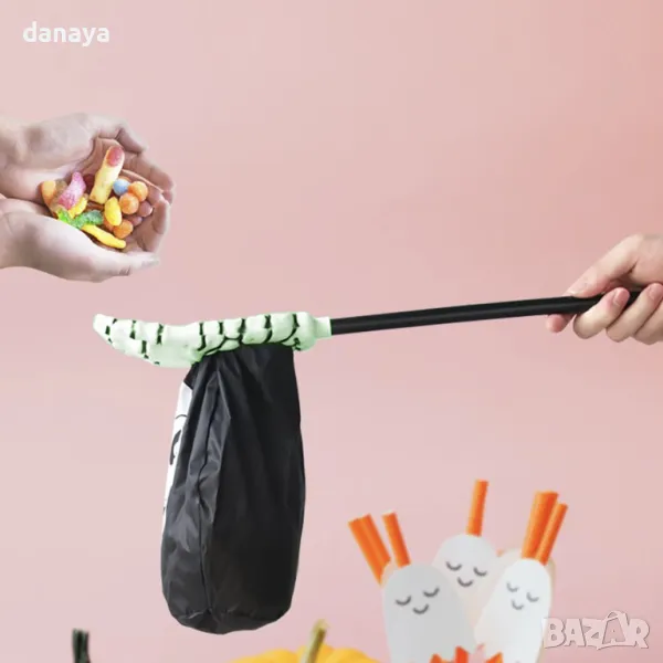 Страшната ръка с торба за събиране на лакомства и дълга дръжка е идеалният аксесоар за всеки празник на Хелоуин! С дължина от 53 см, тази ръка съчетава удобство и забавление, като ви позволява лесно да събирате лакомства, без да се навеждате. Стилният ѝ дизайн с призрачен вид ще впечатли всички около вас, докато торбата с просторен капацитет съхранява всичките ви лакомства. Перфектна за деца и възрастни, които искат да добавят малко страшно настроение към своето събиране на бонбони!