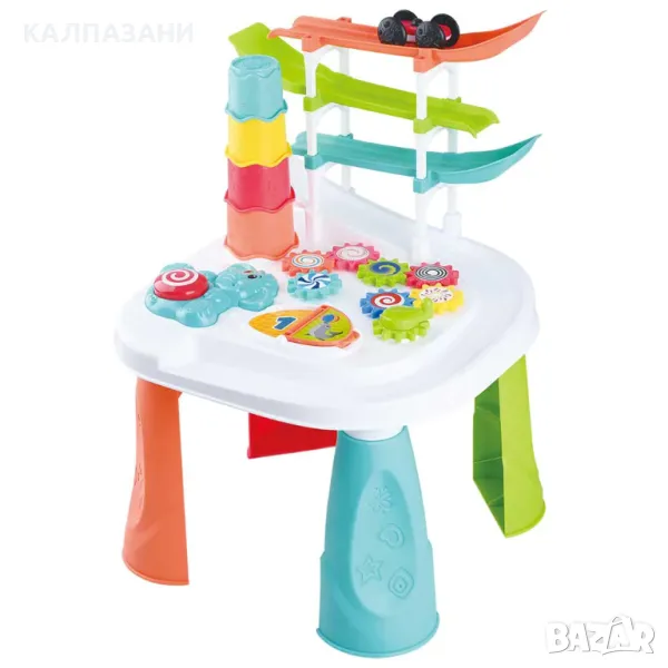 Playgo забавната 5 в 1 активна маса е цветен, интерактивен център за дейности за бебета и малки деца. Вашето мъниче ще се забавлява много, като върти зъбните колела, сортира формите и пуска топките да се търкалят, докато се учи да разпознава цветовете, формите и принципа на причината и следствието по игрив начин.