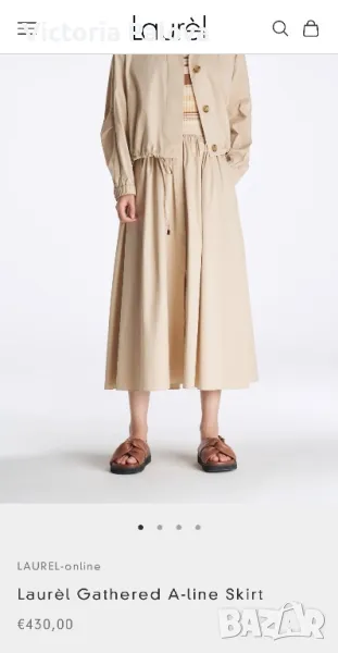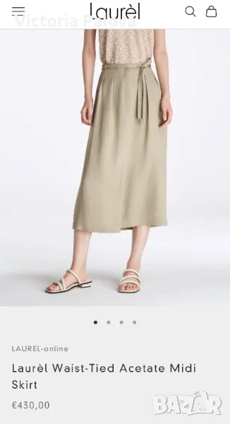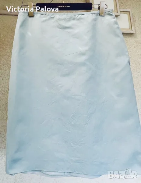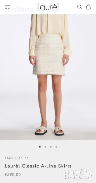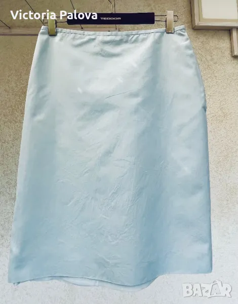 Немски бранд LAURÈL е бил една от линии на ESKADA, световно известен бранд класа лукс, произвеждащ дамско облекло. Полата е с подплата, държи форма, не е мека. Материята е твърд памук ( 70%) и коприна ( 30%), лек блясък. Талия - 40см, ханш -52 см, дължина - 60см.