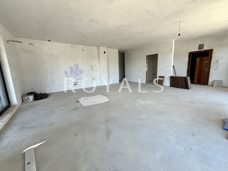 Апартаментът е разположен на втори етаж в новопостроена, четириетажна, ЛУКСОЗНА жилищна сграда. Общата площ на жилището е 155.46 кв.м. и е със следното разпределение: просторна дневна с кухненски кът /54 кв.м./ и излаз на две тераси, от които едната е голяма покривна с възможност за обособяване на chill area, килер/мокро помещение /2 кв.м./, баня с тоалетна, вестибюл, две големи спални /16 кв.м./, като едната е със собствен санитарен възел и гардеробна. Имотът е издаден по БДС - на шпакловка и замазка, подготвен за полагане на подови и стенни настилки. Има възможност за закупуване на подземни паркоместа! Жилищната сграда е от изключително висок клас, фасадата е изградена от HPL панели и облицована с естествен камък травертин, както и разполага с озеленен двор! Локацията позволява бърз и лесен достъп до главни булеварди, автобусна спирка, големи хранителни вериги, търговски центрове, основни училища, детски градини и други удобства, което прави това жилище изключително подходящо за живеене.