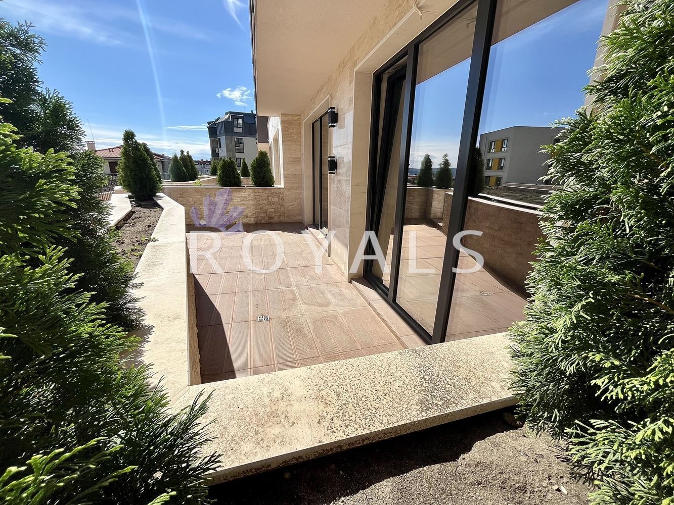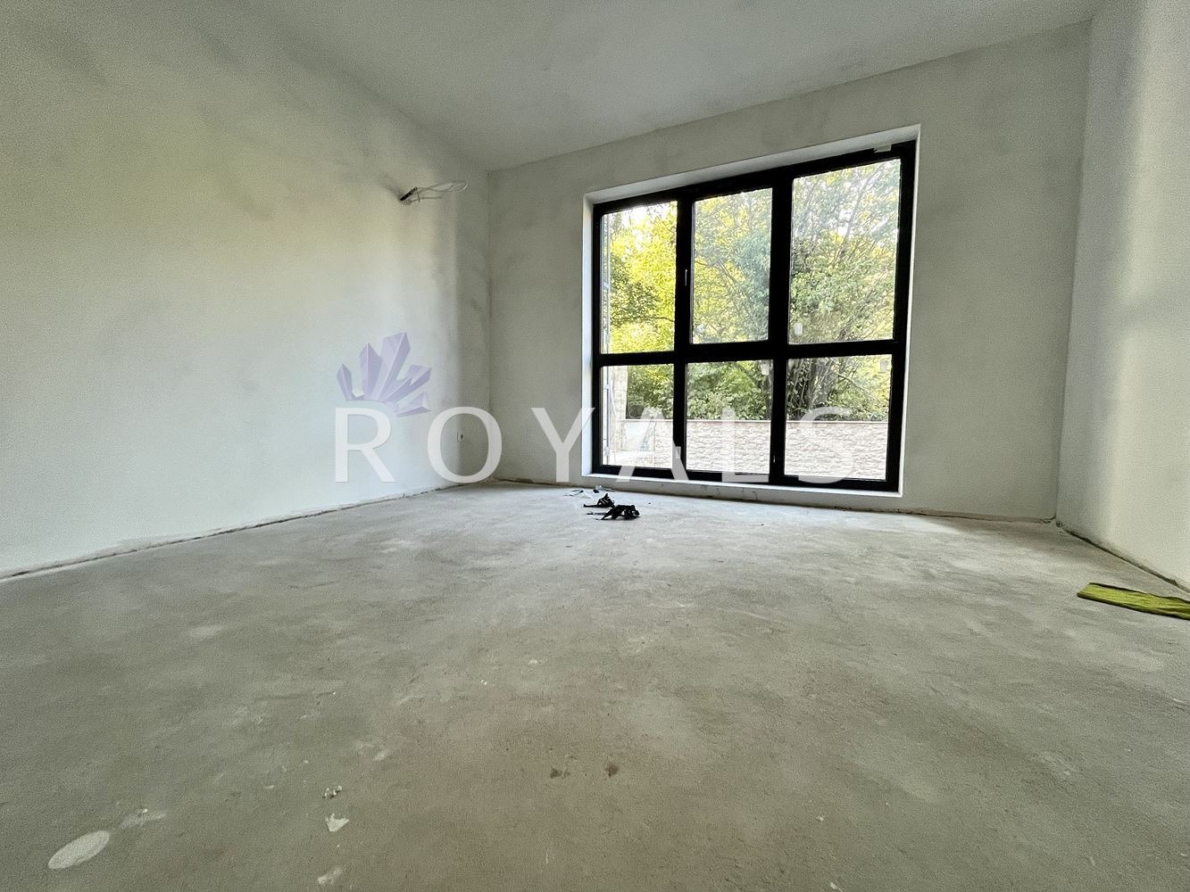 Апартаментът е разположен на първи етаж в новопостроена, четириетажна, ЛУКСОЗНА жилищна сграда. Общата площ на жилището е 176.95 кв.м. и е със следното разпределение: просторна дневна с кухненски кът /43 кв.м./ и излаз на тераса, килер/мокро помещение /3 кв.м./, баня с тоалетна, вестибюл, две големи спални /16 кв.м./, като едната е със собствен санитарен възел и гардеробна и излаз на втора тераса, а другата има излаз към двора на сградата. Имотът е издаден по БДС - на шпакловка и замазка, подготвен за полагане на подови и стенни настилки. Има възможност за закупуване на подземни паркоместа! Жилищната сграда е от изключително висок клас, фасадата е изградена от HPL панели и облицована с естествен камък травертин, както и разполага с озеленен двор! Локацията позволява бърз и лесен достъп до главни булеварди, автобусна спирка, големи хранителни вериги, търговски центрове, основни училища, детски градини и други удобства, което прави това жилище изключително подходящо за живеене.