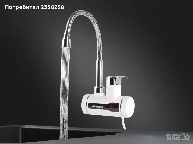 делимано, delmano delimano, dalimano, настолен смесител, стенен смесител, смесител за стена, батерия, чешма Водо-нагревател за монтаж на мивка, нагревател за топла вода топ шоп проточно бойлерче бързо загряващо гъвкав чучур guvkav chuchur душ за къпане слушалка dush гореща вода делимано проточно бойлерче юнга