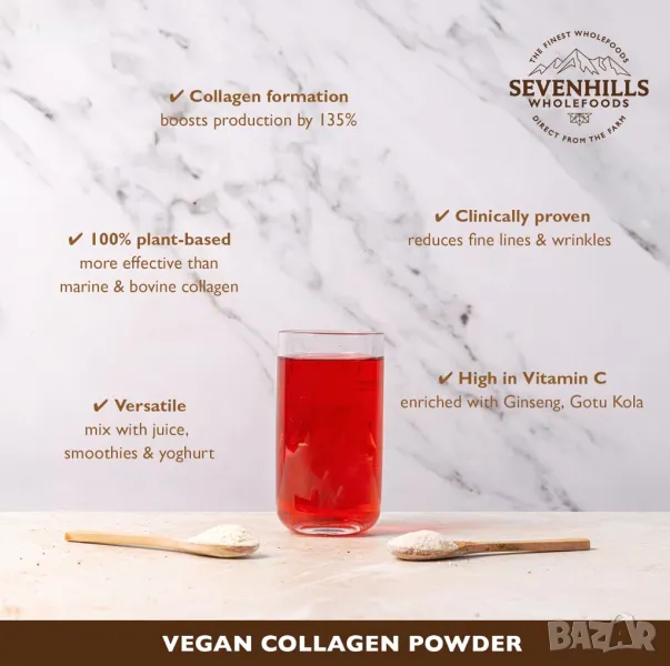 Sevenhills Wholefoods веган колаген на прах 30 дни доставка, добавка на растителна основа, 150 грама