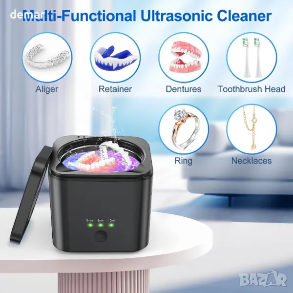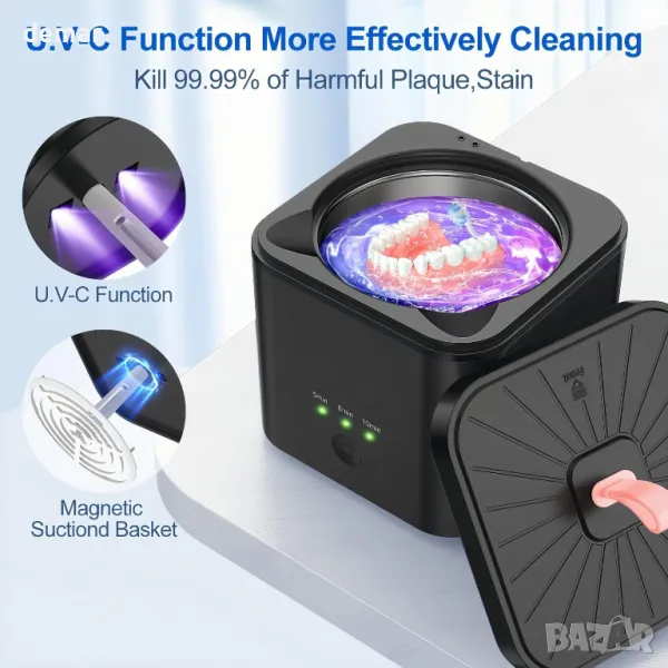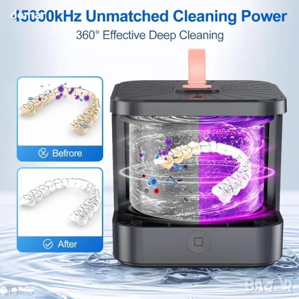 Тази ултразвукова машина за почистване използва вълни от 45 000 Hz за почистване на зъбни приспособления като протези, фиксатори и подравняващи устройства, заедно с бижута. Той разполага с UV светлина, която дезинфекцира с 99,9% ефективност и предлага опции за почистване с времеви интервал от 5, 8 или 10 минути. Ултразвуковата технология създава малки мехурчета, които достигат до дълбоки процепи и дупки, осигурявайки цялостно почистване там, където четките не могат да достигнат. Той е преносим, с резервоар от 200 ml от неръждаема стомана, което го прави подходящ както за домашна употреба, така и за пътуване, като подобрява процеса на почистване за уверен, хигиеничен резултат.
