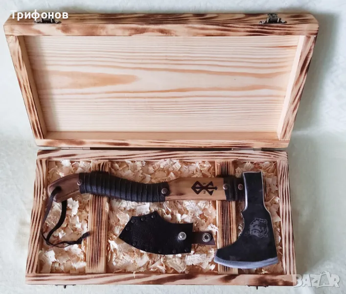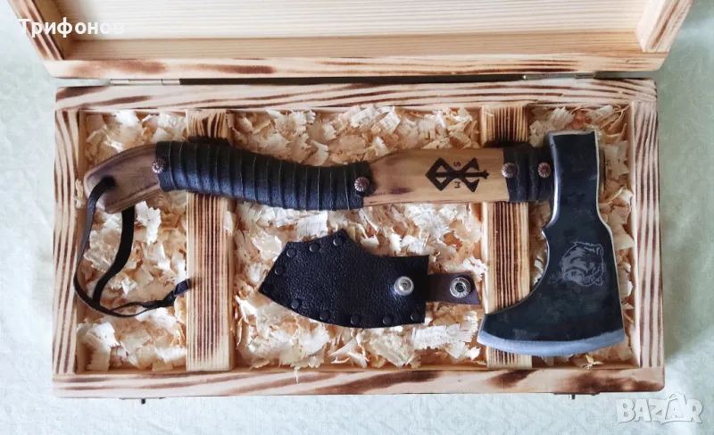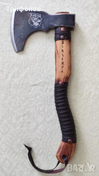 - Тази брадва е идеална за всички, които обичат да се наслаждавате на външния вид и усещането на ръчно резбована брадва, за всички, които обичат викингските форми /оси/. Брадвата може да бъде и уникален декоративен предмет във Вашия дом или удобен инструмент. Тази брадва може да се използва за всякакви задачи, включително хвърляне, сечене, кастрене и разделяне на разпалване, както и за теренна работа. Приятен подарък за годишнини, рожден ден и за много други случаи за подаръци! Може да е най-доброто функционално произведение на изкуството и декорация във Вашия дом, както и истинска мъжка брадва! Тя е уникален подарък за мъж! Добавете чар в дома си с този уникален артикул! Бъдете единствени и неповторими с подаръка, който може да направите!