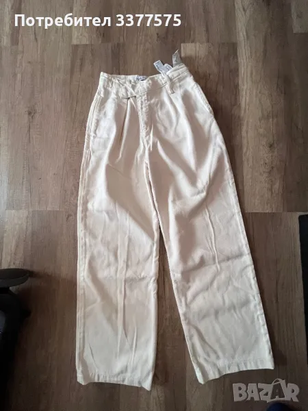 Панталоните са само пробвани, размер 32, отговарят на XS. Цвят екрю.
