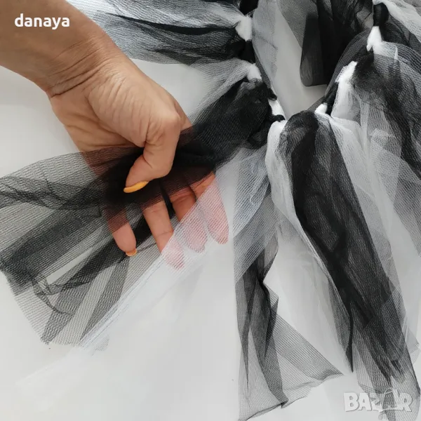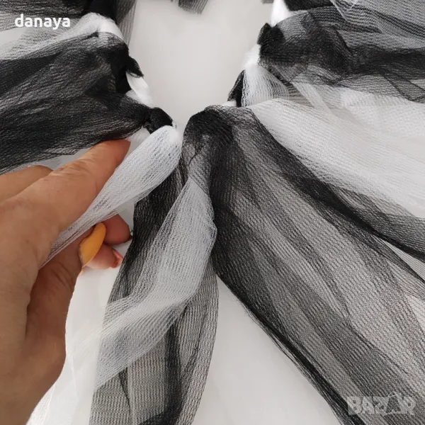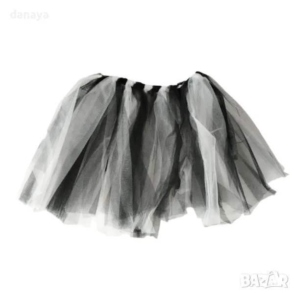 – пола пачка изработена от тюлени ресни в черно и бяло, ластик в талията.