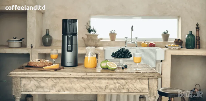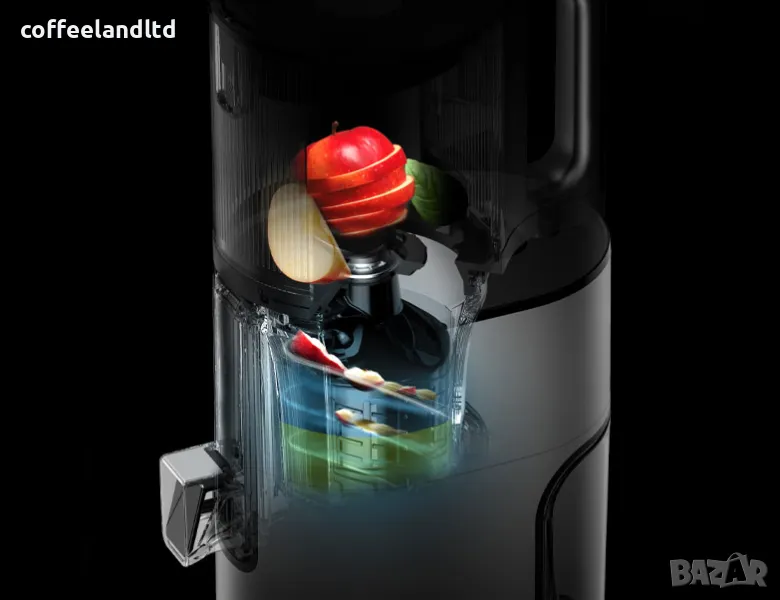 Работи тихо: Почти безшумен AC мотор работи ефективно, използвайки само 150 вата мощност, който е тих в сравнение с центробежните сокоизстисквачки или блендери. Чудесно за ранни сутрини и тихи вечери.