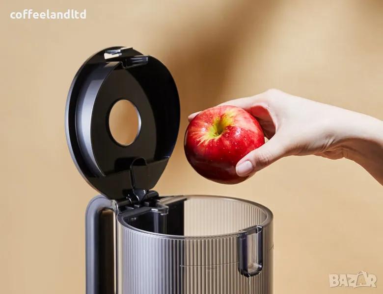 Самозареждащ се бункер: Бавната сокоизстисквачка H400 се предлага с най-големия обем от всеки самозареждащ се бункер досега. Тази промяна се допълва от по-голям отвор и по-голям вход за добавяне на повече съставки, докато сокоизстисквачката все още работи.
