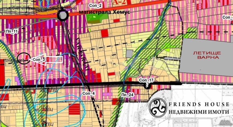 EXCLUSIVE. НАМАЛЕНА ЦЕНА. FRIENDS HOUSE предлага парцел,находящ се в землището на град Игнатиево, местност Мъзгите - зона Соп - смесена обслужваща и производствена зона съгласно проекта на ОУП Аксаковска Община. Параметрите на зоната са: плътност - 60%; кинт - 1,2; максимална кота корниз - 18 метра. Достъп до имота към момента е осигурен по черен път, на 400 м от автомагистрала Хемус . Покрай имота минава съществуващ водопровод..