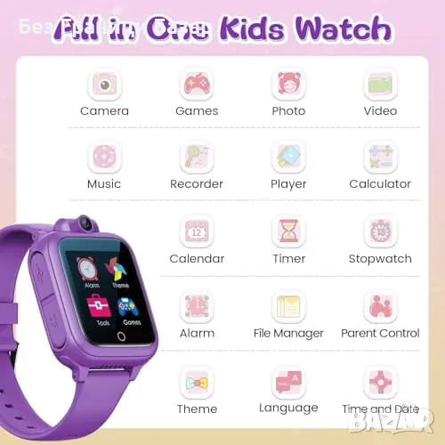 Нов Детски смарт часовник с камера и музика за 5-12 годишни деца подарък