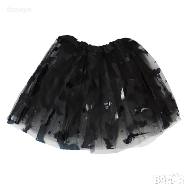 – черна тюлена пола, изработена от 3 слоя тюл, ластик в талията и декорация черни прилепи по полата.