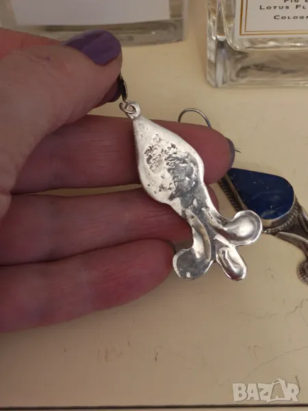 Стара ръчна изработка от 70 те год.Масивно сребро и великолепен лапис лазули..Дължина с окачването 6,5 см без 4,5 см.Камък с размер 1,5 см .Бижу само за ценители.Цената е крайна не приемат бартери и пазарлъци.