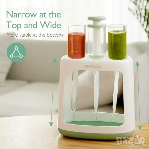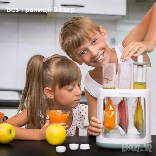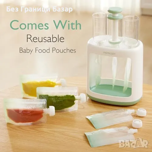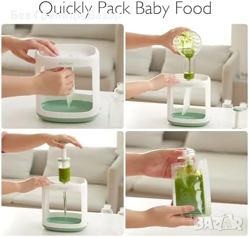 Лесно и удобно пълнене на пюрета без разливане.