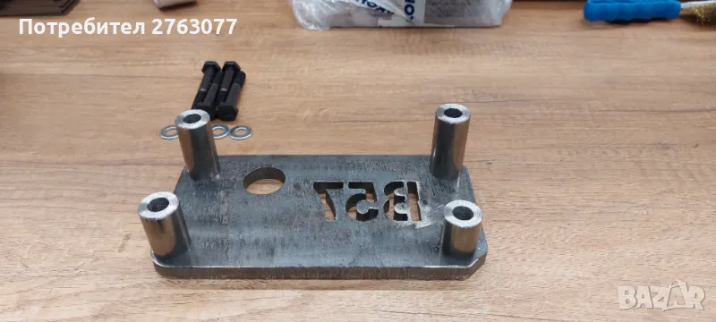 Стойка за захващане на двигатели BMW B57 странично. Има нужда единствено от изработка на втулка, която трябва да се завари към планката и прихване към стойката Ви за двигатели.