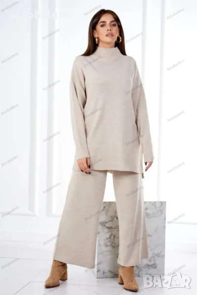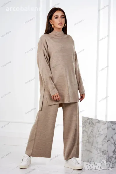 Дамски топъл комплект от две части, пуловер и панталони, 8цвята