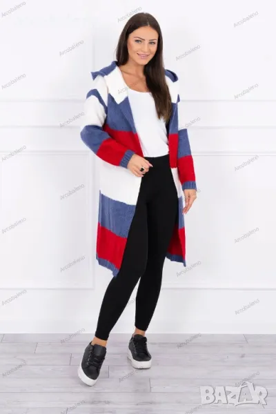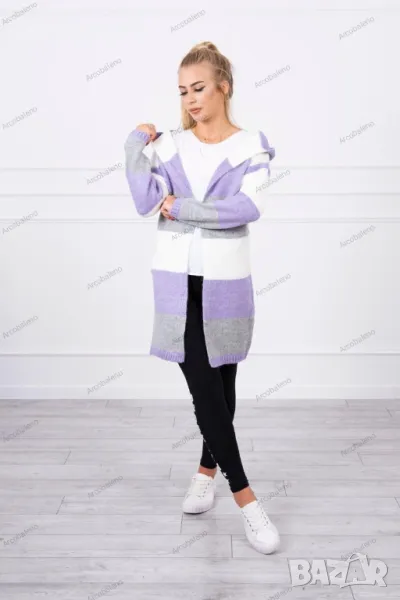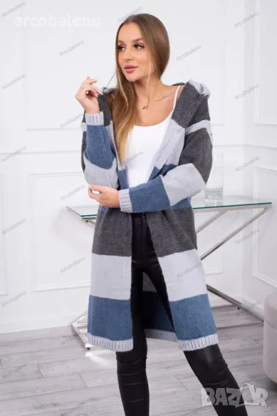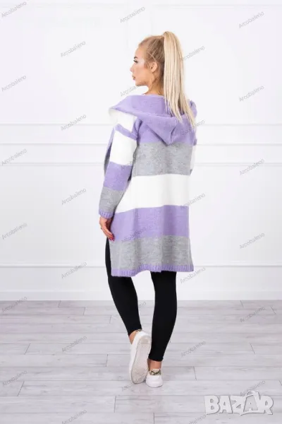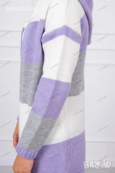 Представяме ви модерна дамска жилетка. Трицветен пуловер. Суичър с качулка. Дълъг пуловер в модерни цветове. Пуловерът е изработен от висококачествена материя. Размерът е универсален и ще бъде подходящ за дами с размери M, L, XL.