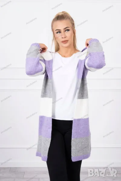 Дълга дамска трицветна жилетка на райе, 4цвята