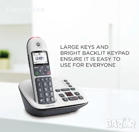 Отличаващ се с голяма, лесна за използване клавиатура с осветена графика, дисплеят е голям и ярък, за да осигури лесно четене. С ергономичен дизайн, слушалката има тактилна клавиатура и гумен заден капак за осигуряване на комфорт и сигурно захващане.