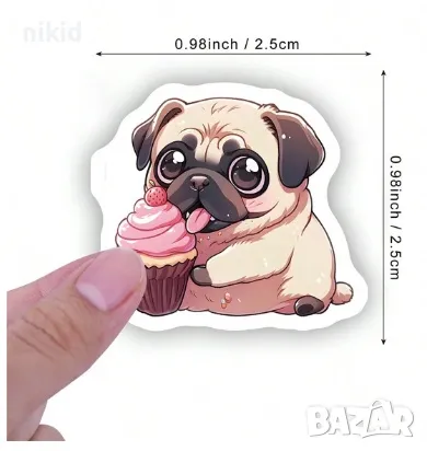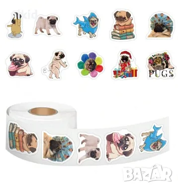 100 бр Куче кучета Мопс малки самозалепващи лепенки стикери за ръчна изработка за подарък → Обява 47298355