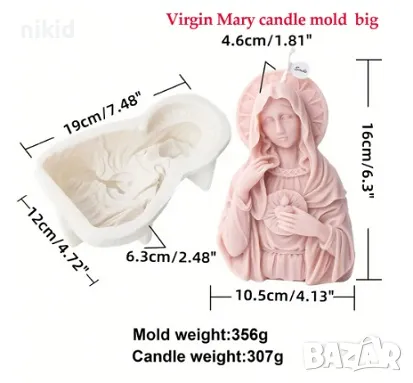 Грамадна Дева Мария Богородица с ореол силиконов молд форма шоколад гипс смола свещ декор → Обява 47298360