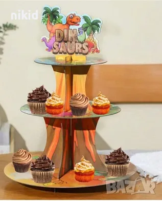 Дино Динозаври Динозавър 3 етажна Триетажна поставка стойка за мъфини картонена → Обява 47298441