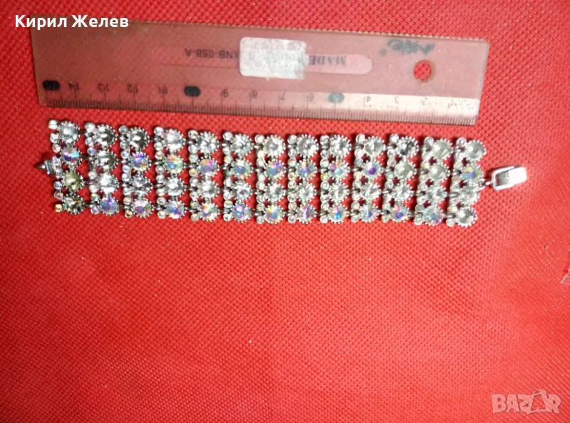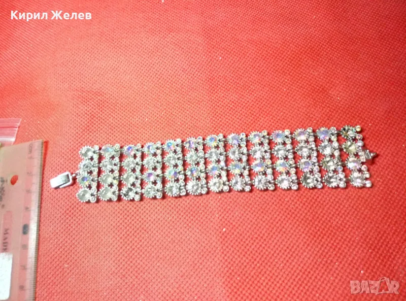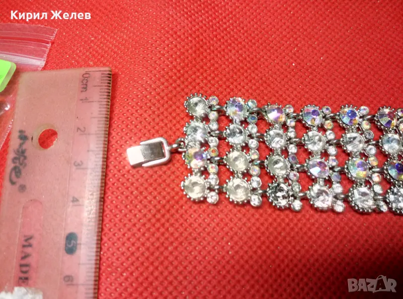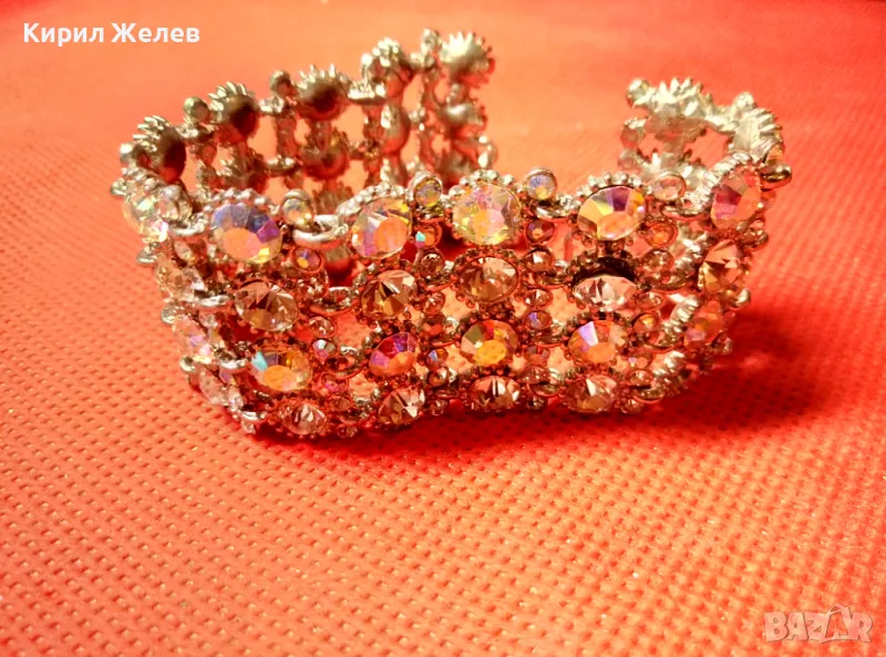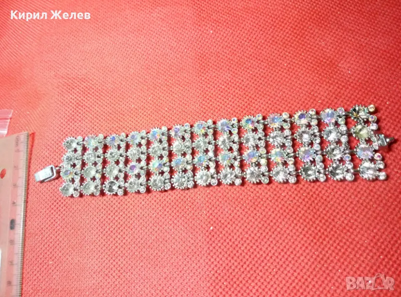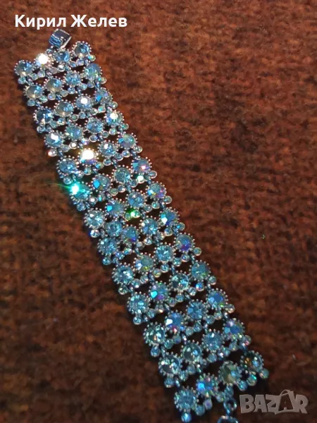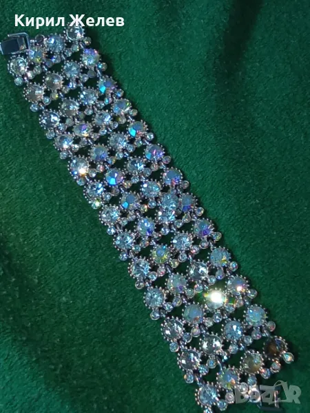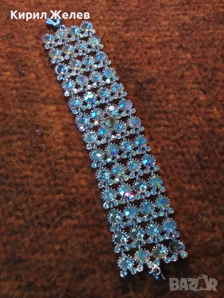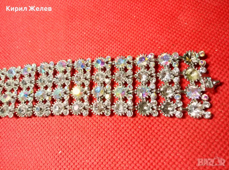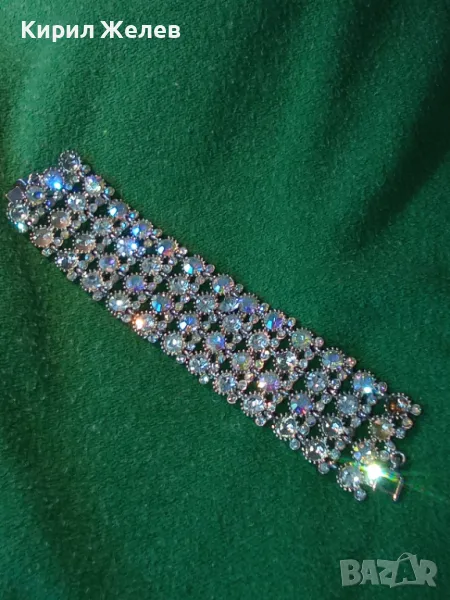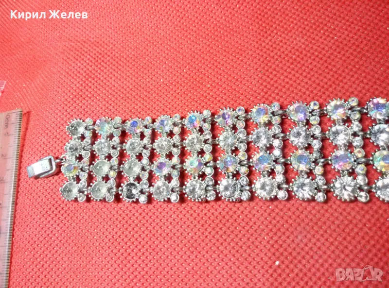 КРАСИВА ПОСРЕБРЕНА РЕТРО СТИЛ ГРИВНА с ИСКРЯЩИ ФАСЕТИРАНИ КРИСТАЛИ 47432