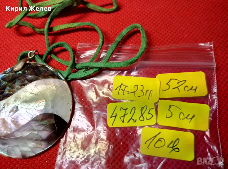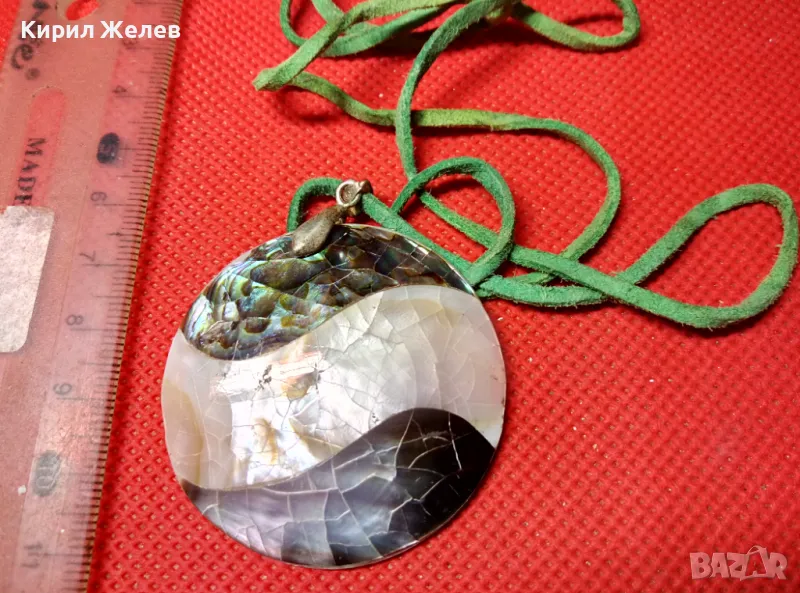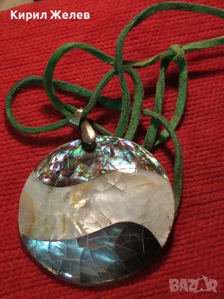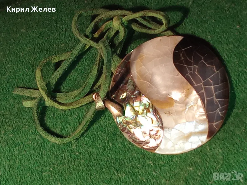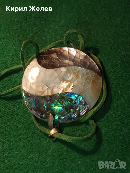 ПРЕЛЕСТЕН СЕДЕФЕН МЕДАЛЬОН КРАЛСКИ СЕДЕФ и ШНУРЧЕ от ВЕЛУР Ръчна АРТ ИЗРАБОТКА 47285