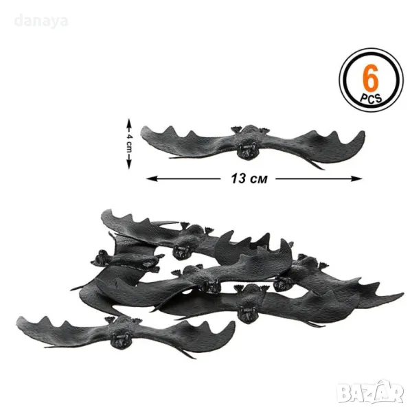 Комплект черни прилепи Хелоуин декорация – 6 броя, гумени.