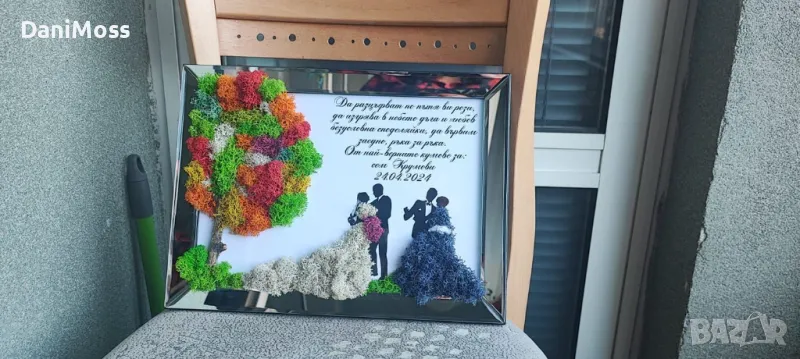 Уникален и оригинален подарък за СВАТБА, КРЪЩЕНЕ, ЗАВЪРШВАНЕ със скандинавски мъх