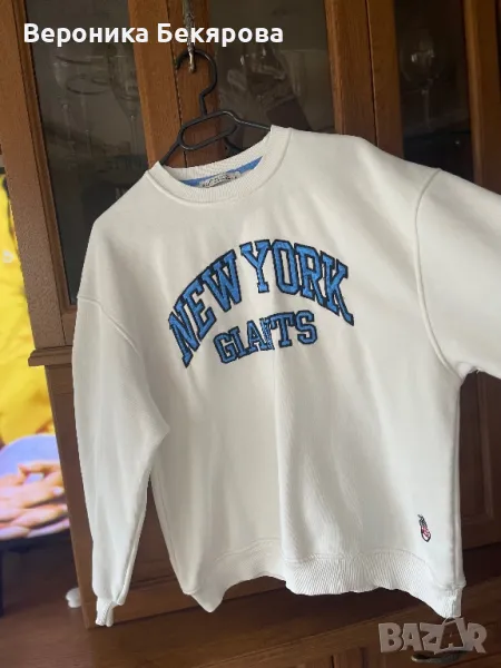 Бял цвят със син надпис