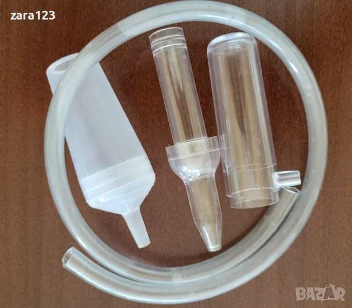 Най-добрият начин за махане на сополчетата на бебе, единият край се пъха в прахосмукачката, с другия аспирирате и всичко излиза. Безценен уред докато бебето не се научи само да духа! Без забележки.