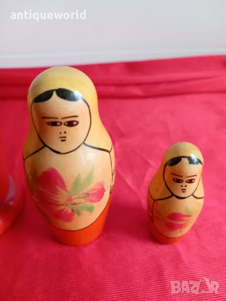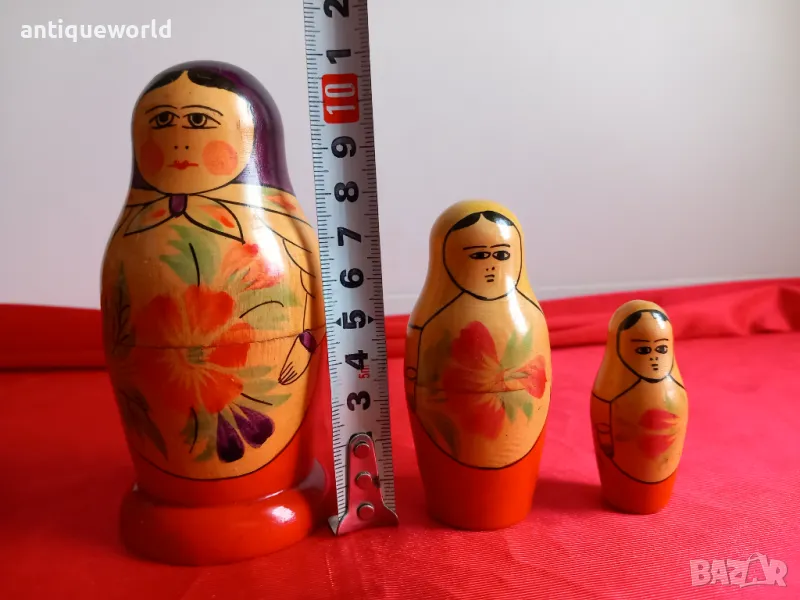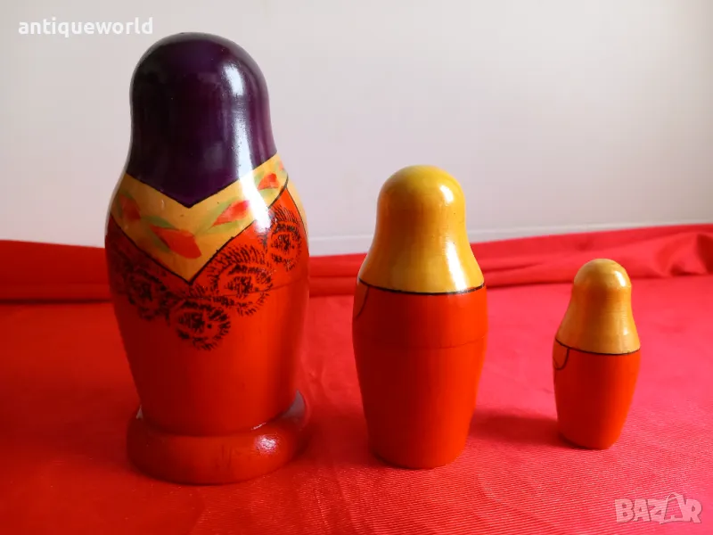Стари Красиви Дървени Ръчно Рисувани Матрьошки Матрьошка ,СССР, 3в1 от 1961г.