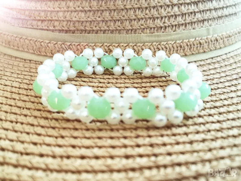 🏷️ Гривна / цвят: перлено бял и светло зелен → Обява 47300707