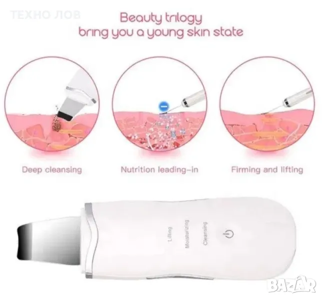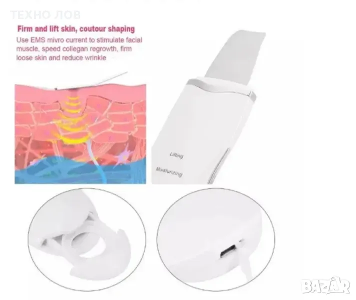 Кожа като нова възможно ли е? ДА!С помощта на това устройство можете спокойно да почистите кожата си и това ще ви помогне да постигнете лифтинг ефект на лицето. Използвайки кавитация поне веднъж седмично, тенът ви винаги може да бъде красив и здрав.Устройството има две функции, които носят следните ЕФЕКТИ:1. ПОЧИСТВАНЕ Кавитационен пилингПремахва мъртвата кожа, пъпки и черни точкиЗатваря разширените пориЛекува и инхибира акнеПлитки белезиПочиства кожатаРегулира и ограничава производството на себум2. ФИРМИРАНЕ / ЛИФТ / ИНЖЕКЦИЯ СонофорезаУкрепва и повдига кожатаНамалява бръчкитеУскорява образуването на колагенСтимулира клетките за естествено обновяванеТехнически данни:2W мощностшпатула 28 kHzтегло с опаковка 0,27кгброй пакети 1ВАЖНО: Шпатулата не бива да остава без заряд на батерията. Моля, зареждайте уреда преди пълното му изтощаване.Предлагаме ви ултразвукова шпатула за почистване на лице, предназначена за кавитационен пилинг и редица други козметични процедури. Това малко ръчно устройство може да се използва в домашни условия за подобряване състоянието на редица кожни проблеми. Уредът е лек и лесно преносим с изцяло електронно управление. Предлага се с капак за защита на работния накрайник.Особености и принцип на работаШпатулата е компактно ултразвуково устройство, чиято задача е да почисти кожата в дълбочина. Генерирайки импулси със специфична дължина на вълната и високи честоти, уредът премахва себум и замърсявания от кожните пори. Този тип устройства дават възможност за дълбока ексфолиация на кожата. Много по-дълбока, отколкото ще постигнете с химически средства и абразивни продукти.За да почисти кожата, шпатулата използва ултразвукови вълни и високочестотни вибрации. Ползите от употребата са сходни с тези на почистващите процедури, направени в престижен салон. Ефектът, който ще постигнете включва:Дълбоко почистена и спокойна кожа;По-малко видими пори;Подобрена текстура и тонус на кожата;Подобрява състоянието при акне и други дерматологични възпаления;Намалява омазняването;Заличава белези с малка дълбочина;Извършва лифтинг на лицето – стяга отпусната кожа.Натрупаните в порите замърсявания причиняват черни точки и акне. По този начин ултразвуковата шпатула предотвратява появата на възпаления, а при вече възникнали състояния, ги лекува успешно. С почистването на кожата в дълбочина се постига и друг важен ефект – пълноценно усвояване на полезните вещества в козметичните продукти.Един от най-големите плюсове на ултразвуковите шпатули е фактът, че към момента те са най-нежната и безопасна форма на пилинг, налична на козметичния пазар. Процедурите се понасят добре дори от хора с чувствителна кожа, на които други видове ексфолиация не действат добре.Скраберът/шпатула за лице може да се използва дори при лека форма на розацея. Предимство е това, че върху кожата не остават охлузвания и зачервявания. Непосредствено след процедурата можете да нанесете грим и да излезете на важна среща или на вечерно събитие.Не е желателно кожата да се излага на силно слънце след процедурите. Използвайте UV защита!
