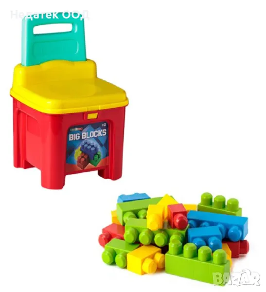 Бебешки тухлички с големи размери в ярки цветове за страхотно забавление. Това е безопасна играчка за деца и засилва детското мислене и въображение. Те са в практичен калъф за стол, който може да се използва и като седалка, в която се съхраняват.