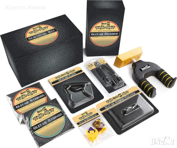 Комплектът аксесоари за китара RockJam е идеалното допълнение към всяка чанта за концерт на китарист. Този пакет е проектиран от китаристи за китаристи, за да се справят ефективно с предизвикателствата, по-малко време за стрес и повече време за игра. Първо, този пакет аксесоари за китара се предлага с висококачествена стенна стойка за китара, която гарантира, че вашият инструмент е едновременно защитен и красиво представен, когато не се използва. Включени са резервни струни за струни за електрическа китара и струни за акустична китара за неизбежно прекъсване и са свързани с тунер за китара 3 в 1, който премахва щифтовете и добавя напрежение към струните на китарата за лесна настройка и лесно рязане. Всичко това е свързано с капо за китара и почистващ препарат за китарни струни и прагове, които гарантират, че свиренето на китара звучи толкова добре, колкото изглежда. За да завършите пакета, ще получите пакет с кирка и държач за китара.