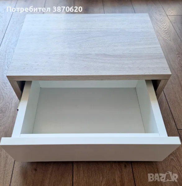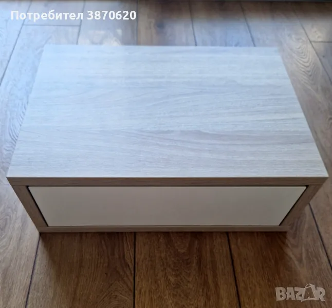 Продавам две нощни шкафчета за стенен монтаж. Сложени и свалени чисто нови, при свалянето отзад на някои от дупките целостта на фазера е нарушена, но може да се смени. Реално единствената роля на дупките са за да може окачвача да се завие за дюбела в стената, няма никаква носеща роля . Продава се защото се наложи да направя корекции на размерите, но иначе пак си поръчах същите и съм супер доволен.