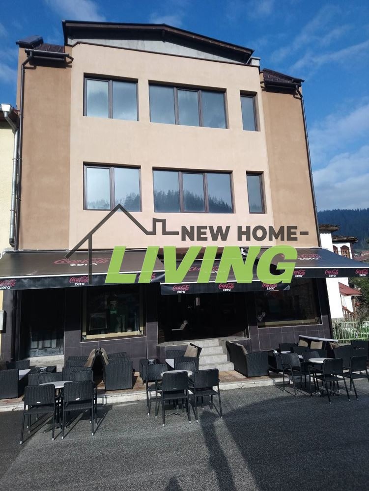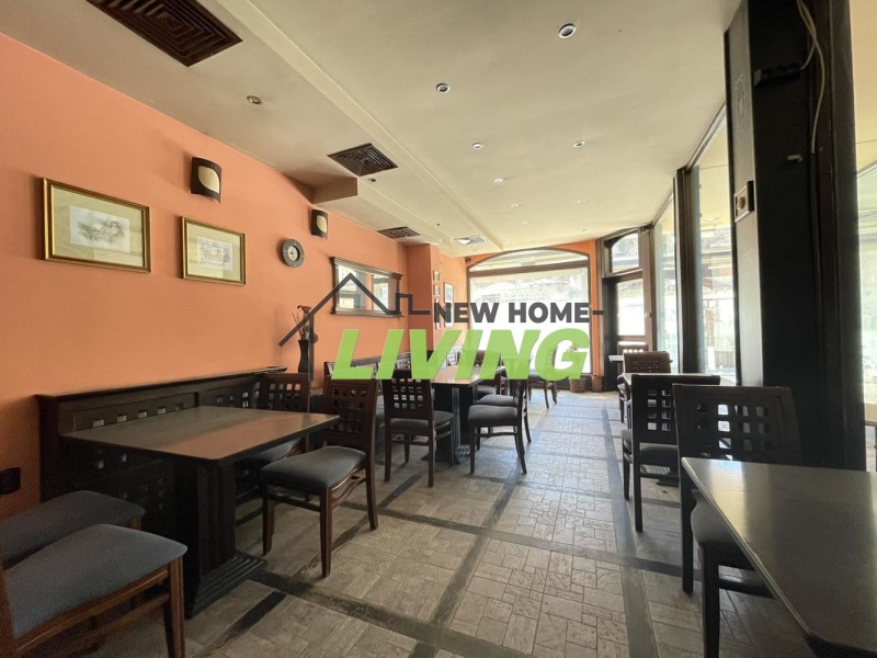 На приземния етаж са търговски площи с - кафе аперитив с кухня и лице към центъра с градина,два магазина със санитарен възел и голямо помещение предвидено за Бар . Квадратурата на търговските площи е 380 кв.м. +50 кв.м. двор, обектите са оборудвани с парно отопление на твърдо гориво и бойлер . Заведението е оборудвано с мебели и хладилна витрина ,фризер и кухня ,като вътре са 20 места отвън 32 места.