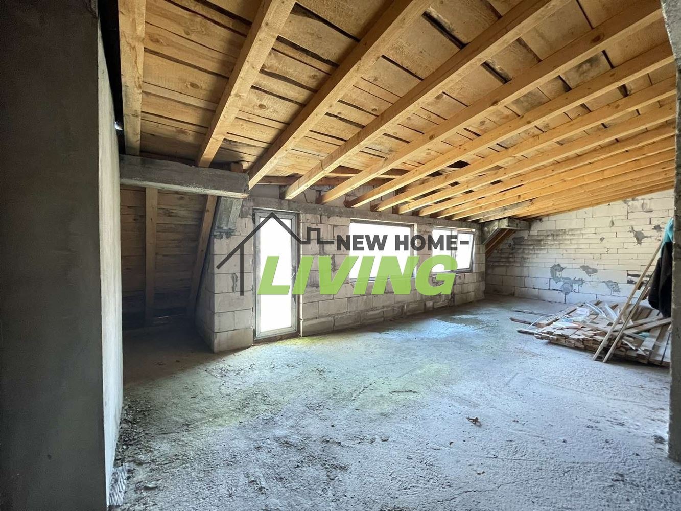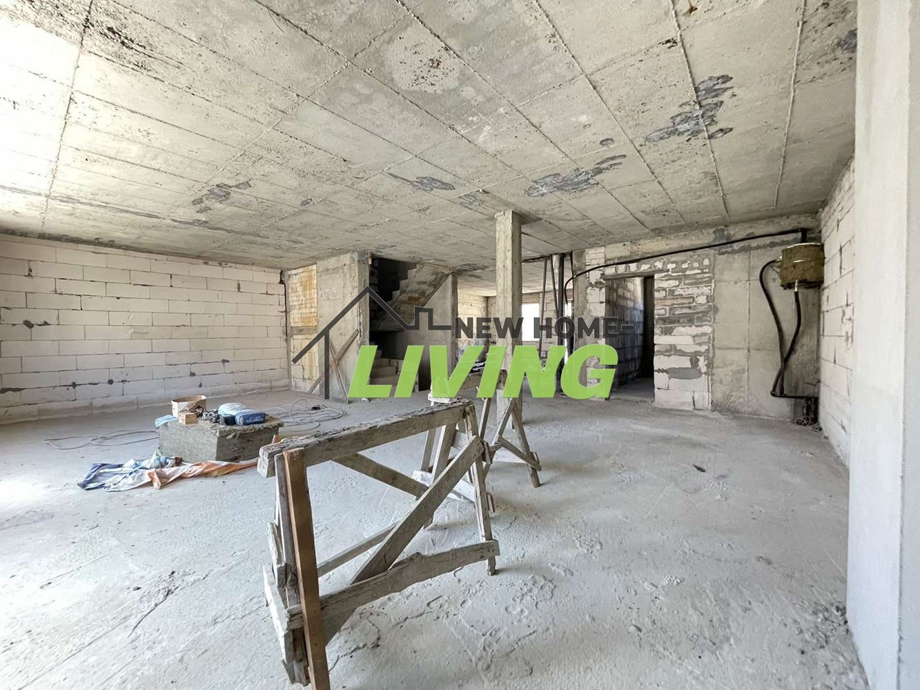 .Жилищните етажи са три с обща площ от 475 кв.м. и отделен вход. .Първи жилищен етаж е на груб строеж с голяма тераса отворено пространство 185 кв.м. с дограма Саламандър. Втори жилищен етаж е на груб строеж 155 кв.м. с дограма и две тераси.от които едната е голяма .Трети жилищен етаж е мансарден на груб строеж с тераса и дограма.