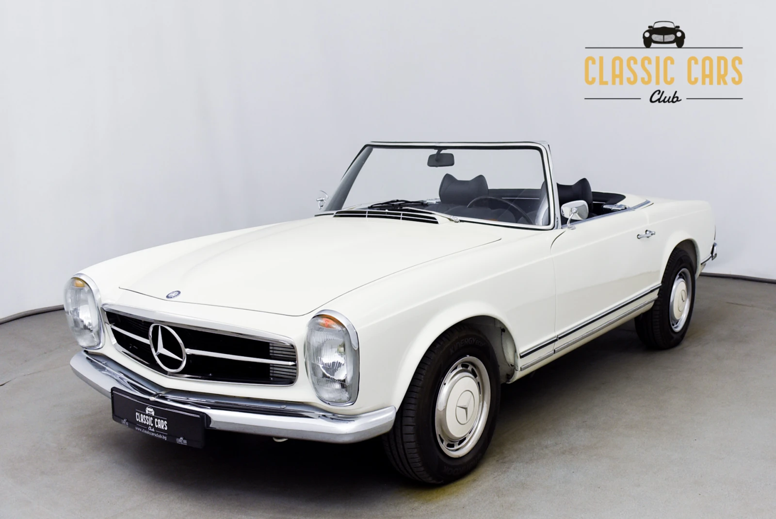 Класик карс клуб има удоволствието да предложи на Вашето внимание Mercedes-Benz 230SL Pagoda в добро състояние след реставрация през 2021г. , от която има снимков материал и с много малък пробег от само 7100 км изминати след нея. Общият пробег не ни е известен. От общо 48 912 бр. произведени Mercedes-Benz от модела W113 наречен още Pagoda , 19 831бр. са от модела 230SL, като предложения от нас автомобил. 230-ките са били произвеждани между март 1963 г. и януари 1967 г. Предлагания от нас автомобил е доставен нов през клон 227 в Нюрнберг, Германия през декември 1964 г. Това е немски модел за германския пазар. Производствената карта с данни на опциите, от която имаме копие, описва оригиналната фабрична цветова комбинация, 717 папирусово бял екстериор и 205 кожено син интериор. Също така от нея е видно, че нашия W113 е излезнал от завода като 230SL и е с оригиналния двигател, както и че автоматичната скоростна кутия е още оригинално вградената, т. е. става въпрос за така наречения Matching number автомобил. Към автомобила няма твърд таван. Дата п. регистрация: декември 1964 г. Пробег: 7100км Двигател: M127, работен обем: 2306 cm³ , мощност: 150 к. с. Скоростна кутия: автоматична Оставам на разположение за допълнителни въпроси. Огледи се извършват по предварителна заявка! Вижте нашите други предложения на: www. classiccarsclub. bg