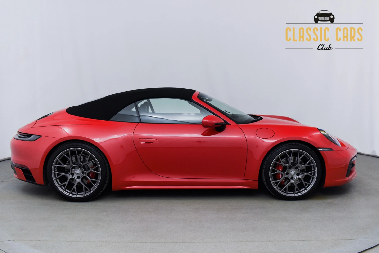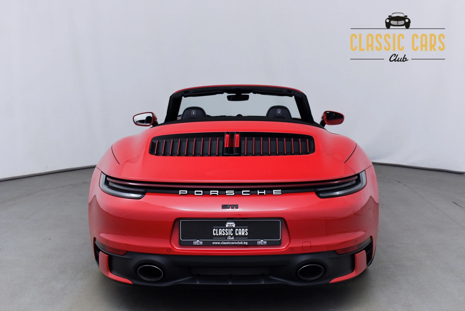 Класик карс клуб има удоволствието да предложи на Вашето внимание Porsche 911 992 Carrera S cabrio. Автомобилът е закупен от първия си собственик в Германия, минал е техническо обслужване на 13. 07. 2023г. в Porsche Zentrum Schwä bisch Gmü nd при пробег 25386 км и има валидна Porsche approved гаранция до 10. 2026г. Оборудването е следното: Цвят: Guards Red Кожен салон: черен Сгъваем покрив на кабриолет: черен 20-инчови предни/21-инчови задни RS Spyder джанти в цвят Satin Platinum 8-степенна трансмисия с два съединителя PDK Парктроник (отпред и отзад) вкл. панорамен обзор на 360 градуса Адаптивен автопилот Затъмнени LED Матрични светлини вкл. Porsche Dynamic Light System Plus (PDLS Plus) Адаптивни спортни седалки Plus, електрически с настройка в 18 посоки и пакет памет Отопление на седалките отпред Lane change assist Активна спортна система на окачването PASM (Porsche Active Suspension Management) Система за увеличаване на клиренса на предния мост Електрическо прибиране на огледалата Колани в цвят: Guards Red Sport Chrono Plus пакет Porsche емблеми на подглавниците Спортна изпускателна система (изпускателни тръби в черно) Долни облицовки на външните огледала, боядисани в цвят на каросерията, включително основи на огледалата, боядисани в черно Дата на п. регистрация: май 2020 г. ; Пробег: 41000 км Двигател: бензин, обем: 2981 cm³ , мощност: 450 к. с. Оставам на разположение за допълнителни въпроси. Огледи се извършват по предварителна заявка! Вижте нашите други предложения на: www. classiccarsclub. bg