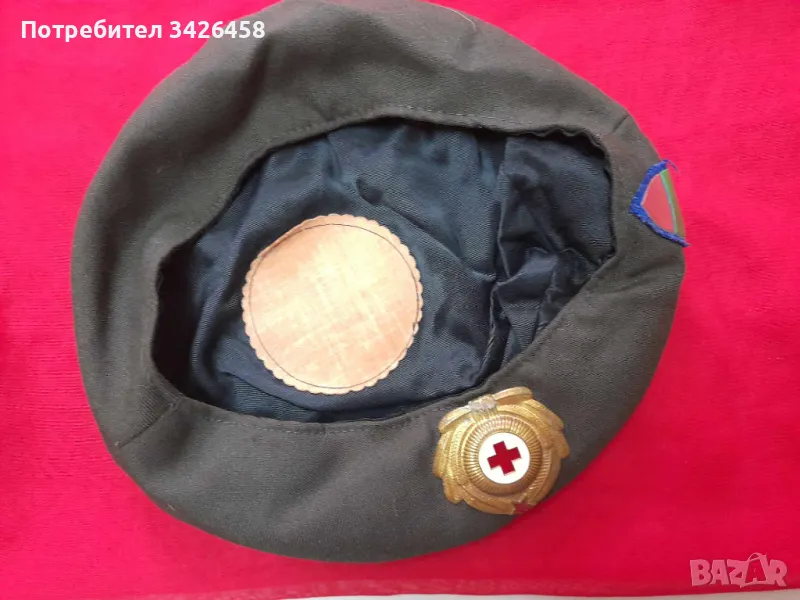 Българска военна лекарска барета с оригиналната кокарда отпред.