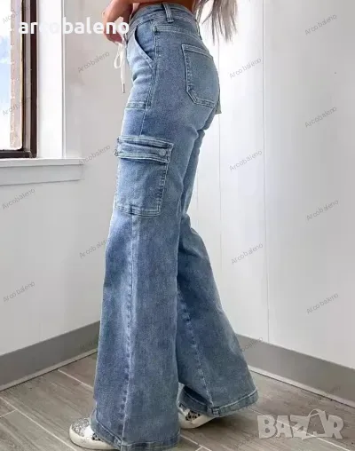 Дамски ежедневни дънки с прав крачол с връзки и много джобове