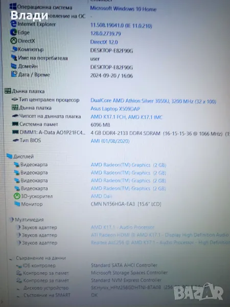 Asus X509DA 15.6" FHD AMD Athlon Silver 8GB 256GB SSD отлична батерия