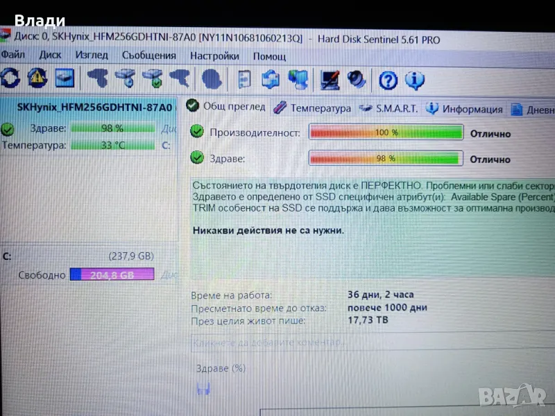 Инсталиран с Windows 64 bit,HDD Sentinel,Speccy и Aida 64,за да се тества преди да се плати.