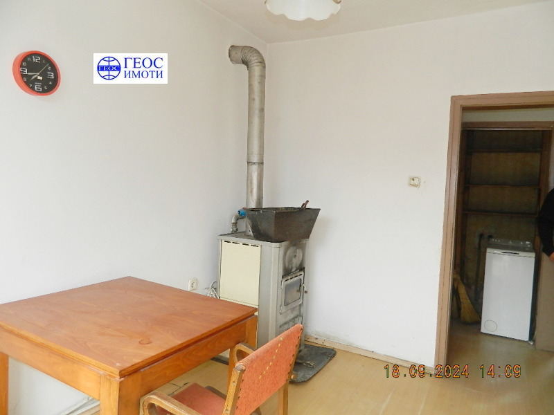 Продава се втори етаж със застроена площ от 89 кв.м. от двуетажна жилищна сграда, със смесена конструкция основно гредоред и частично плоча. Състои се от входно антре, голяма всекидневна, две спални, трапезария, малка кухня, килер и баня с тоалетна. Етажът се продава необзаведен. Извършени са следните подобрения: монтирана е Аl дограма, изградено е локално парно с водна риза и са монтирани отоплителни тела във всяка стая, инсталиран е и слънчев панел за топла вода. В цената влиза и изграденото складово помещение под външна плоча с площ ок. 60 кв.м, както и ½ от застроен и незастроен поземлен имот с обща площ 452 кв.м. Имотът е разположен между две улици - на второстепенна улица, успоредна с бул. България, на две минути пешеходно разстояние от магазини, спирка. Безпроблемно паркиране. Изложение - основно южно, като от етажа се открива невероятна панорама към планината. Възможен коментар на цената.