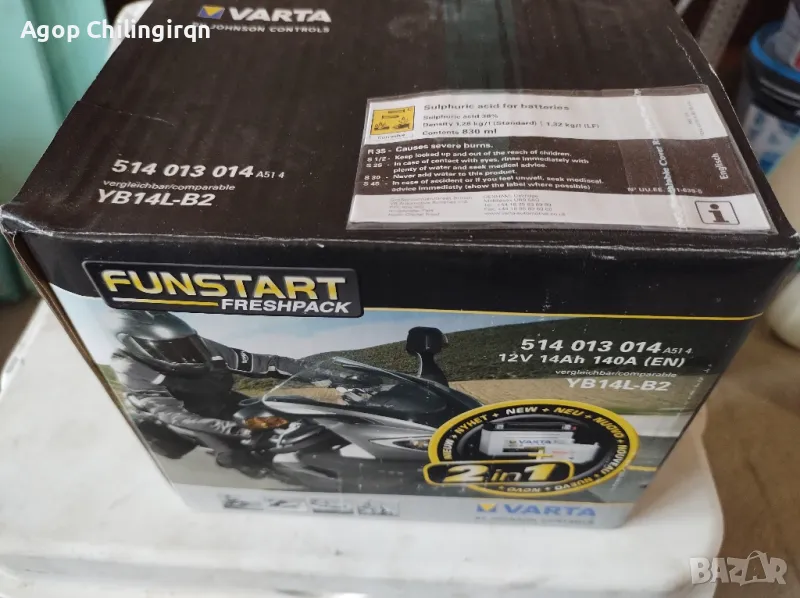 Varta YB14L-B2, снимка 1 - Части - 47306013 Varta YB14L-B2, снимка 2 - Части - 47306013 Varta YB14L-B2, снимка 3 - Части - 47306013 1/3