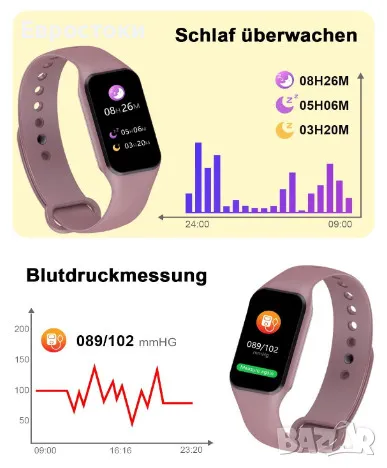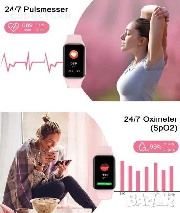 Други функции. Управление на музика, повдигане на ръката за осветяване на екрана, дистанционно управление на камера, хронометър, таймер, тренировка за дишане, търсене на мобилен телефон, регулируема яркост, здравни съвети за жени и много други практични функции.