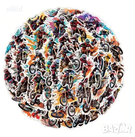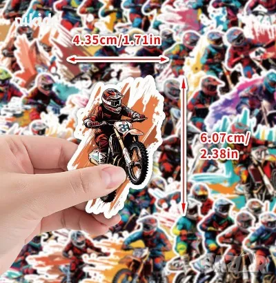 50 бр Мотор моторист Байкър мотоциклет колело велосипед вело крос самозалепващи лепенки стикери → Обява 47308846
